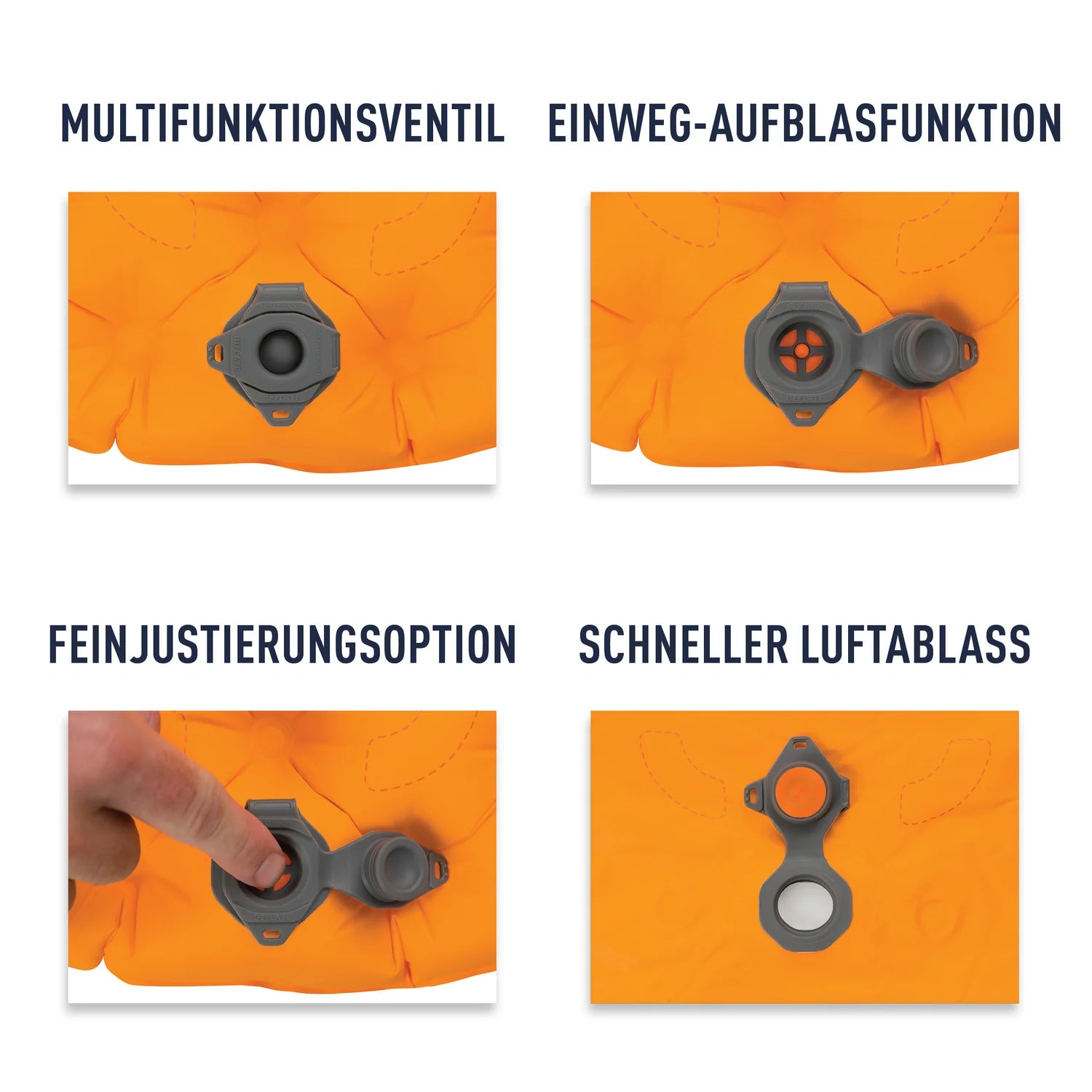 - Schnelles und einfaches Aufblasen, Entleeren und Anpassen wird durch unser Multifunktionsventil und den mitgelieferten Airstream-Pumpsack ermöglicht.
