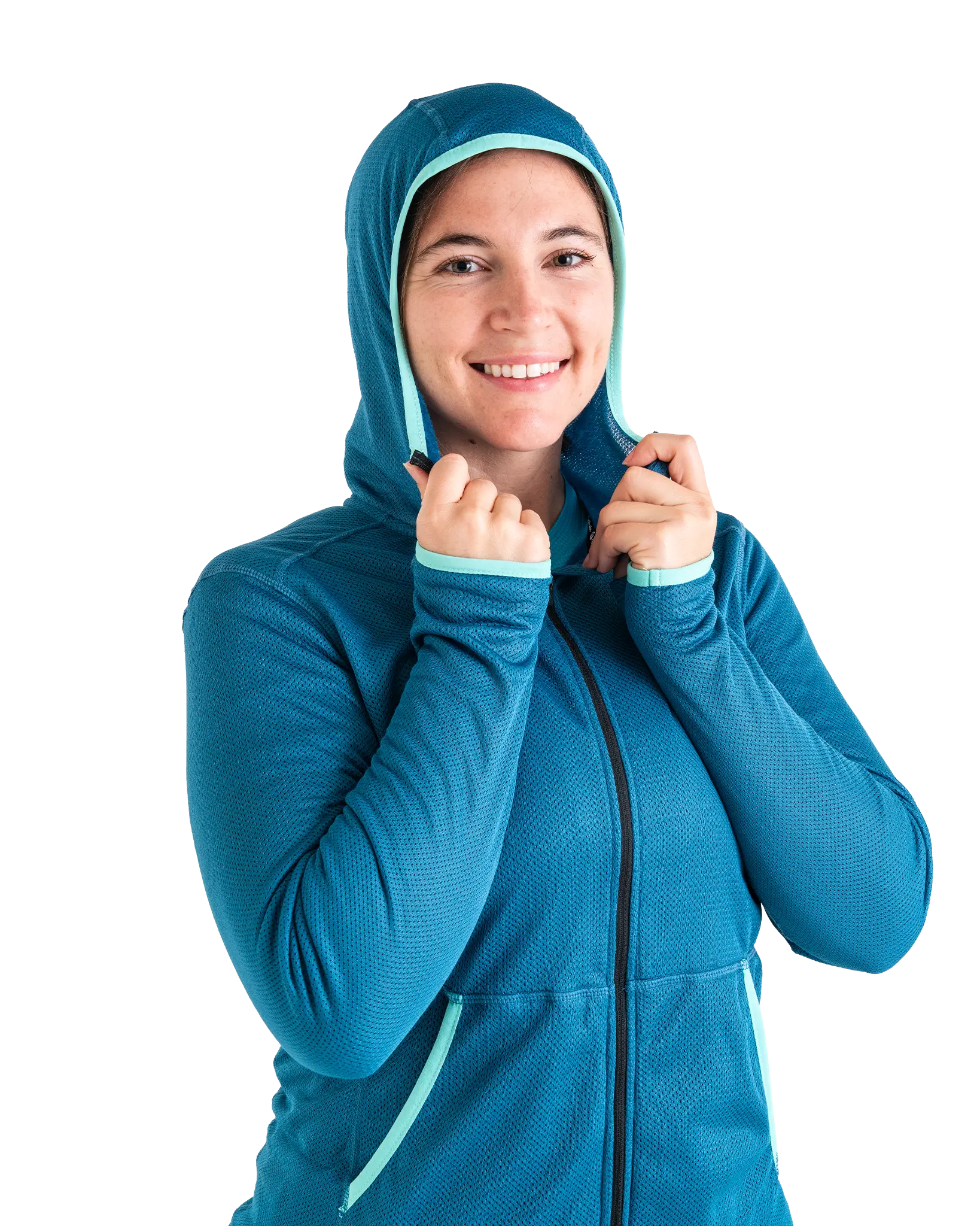- Anliegende Kapuze & Daumenschlaufen: sitzen sicher, schließen Wärme ein & schützen zusätzlich vor Sonne.